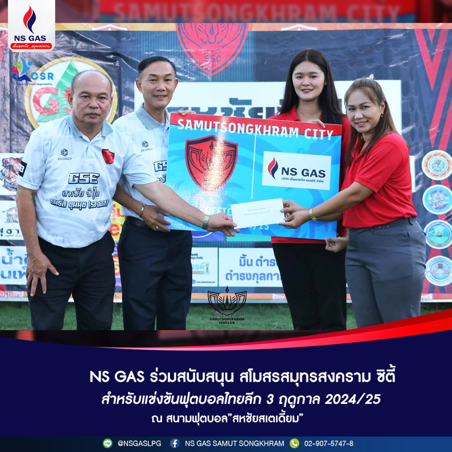 NSGAS ร่วมสนับสนุน สโมสรสมุทรสงครามซิตี้ สำหรับแข่งขันฟุตบอลไทยลีค 3 ฤดูกาล ณ สนามฟุตบอล สหชัยสเตเดี้ยม