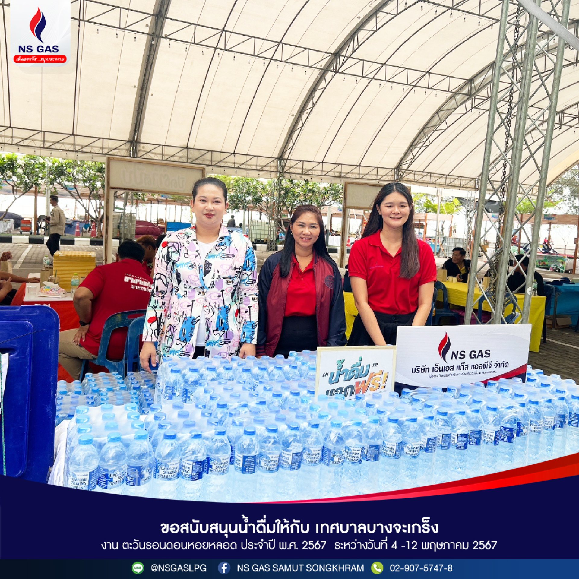เอ็นเอ็สแก๊ส ร่วมทำโรงทาน และ สนับสนุนน้ำแก๊สฟรี 1 ถัง ให้กับร้านค้าที่มาร่วมทำโรงทานในงานทอดกฐินสามัคคี ประจำปี 2568 เมื่อวันที่ 26 ต.ค. 68