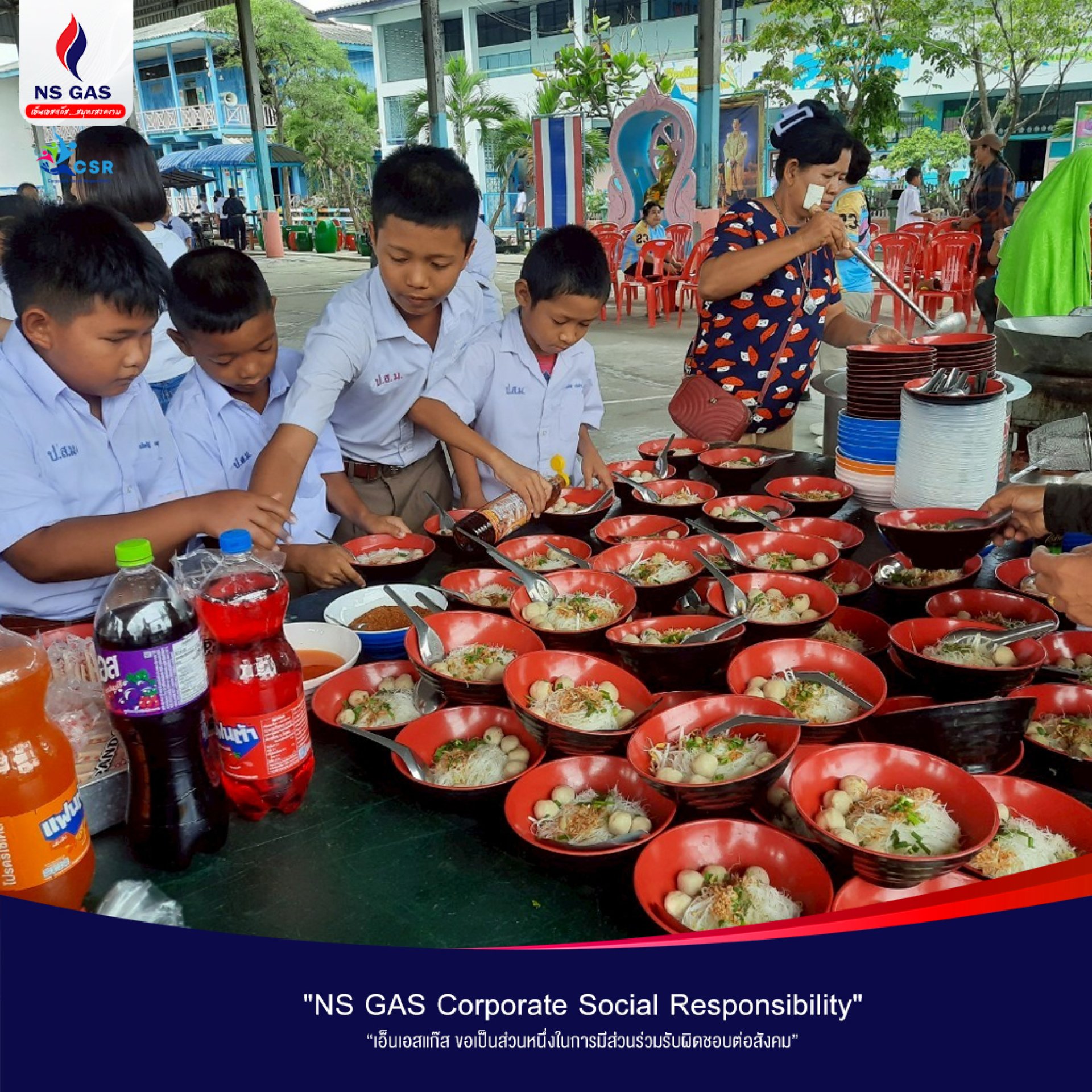 NS GAS ร่วมสนับสนุนแก๊สหุงต้มเอ็นเอสแก๊ส เลี้ยงอาหาร นักเรียน โรงเรียนวัดปากสมุทร